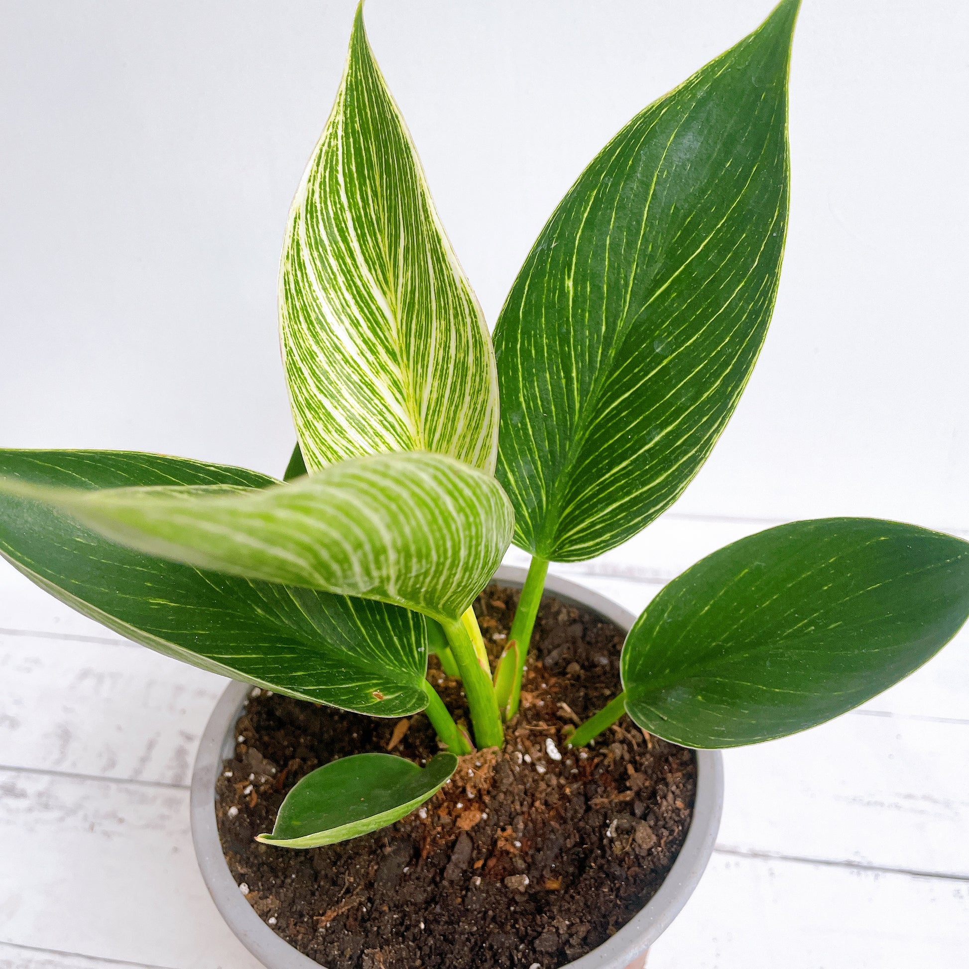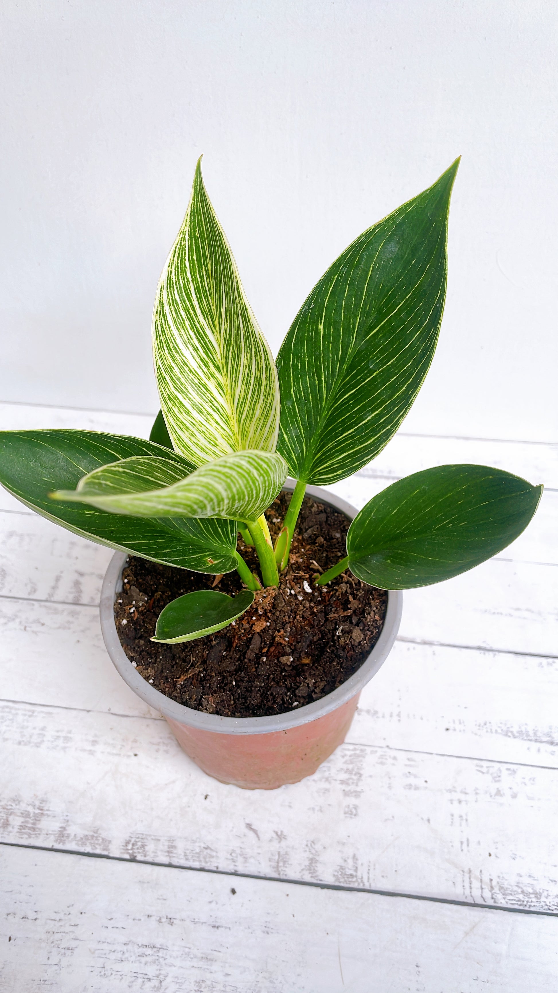 El Philodendron Birkin o "White Wawe" pertenece a la familia de los Philodendron es una variedad variegata, esto quiere decir que en sus hojas o tallos reúne diferentes colores, lo que hace que se convierta en una planta atractiva y perfecta para decoración.